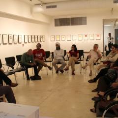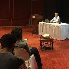 Vivan Sundaram presented a set of ideas which have been developed through some of his recent installation which were on display at the Kiran Nadar Museum of Art. He walked through the exhibition with the collegium members while recounting his artistic concerns. After the walk the collegium members and the artist sat in one of the galleries and discussed the concerns presented by the artist as well as the questions raised.