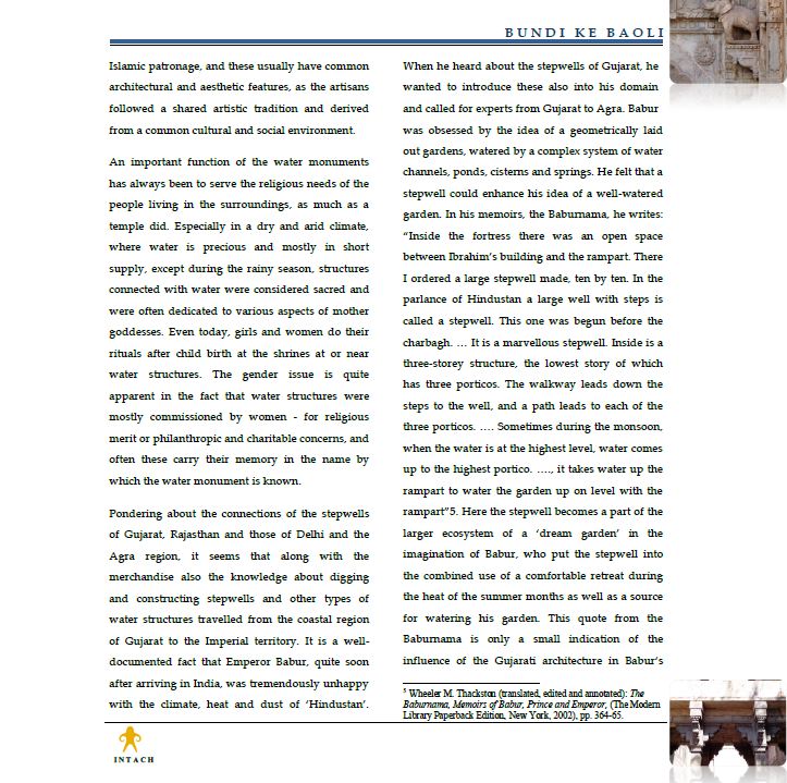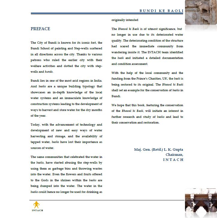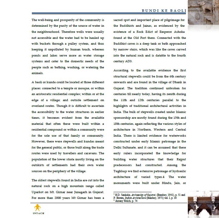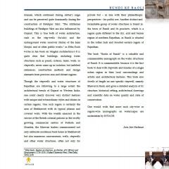 The activity of architectural restoration of the palace would also lead to a revival of the medieval crafts, which exist in the city in a neglected condition. It is also likely to set in motion a process of conservation/ restoration of the city and its other palaces and 'havelis' (traditional extended- family dwellings), as well as revival of the traditional water supply system of the town built with remarkable ingenuity using a series of lakes connected to 'baoris' (step wells) set within the urban fabric.