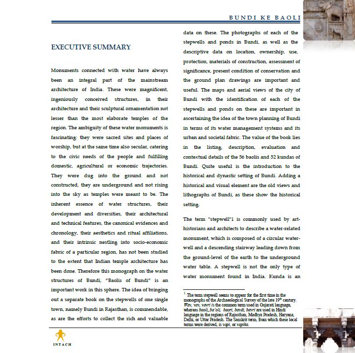 Bundi city and its region has been the subject of serious study by concervation architects and the Indian National Trust for Architectural Heritage (INTACH) for a projeceted revitalization of the built heritage. These studies could be convinced into action with the Taragarh project becoming the catalyst, thus benefiting the entire population of this historic city.