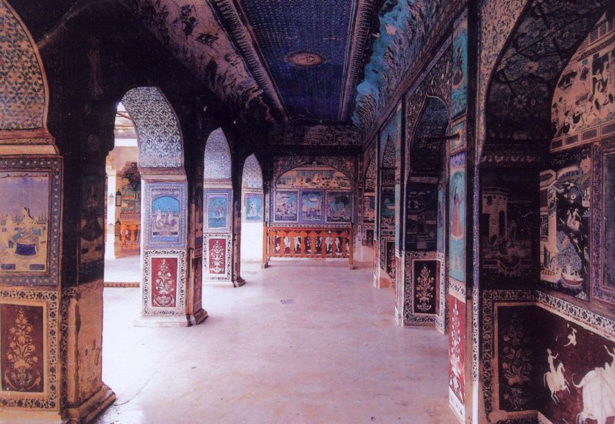 Several parts of the palace contain frescoes, in a good condition, belonging to the celebrated Bundi School of miniature painting.