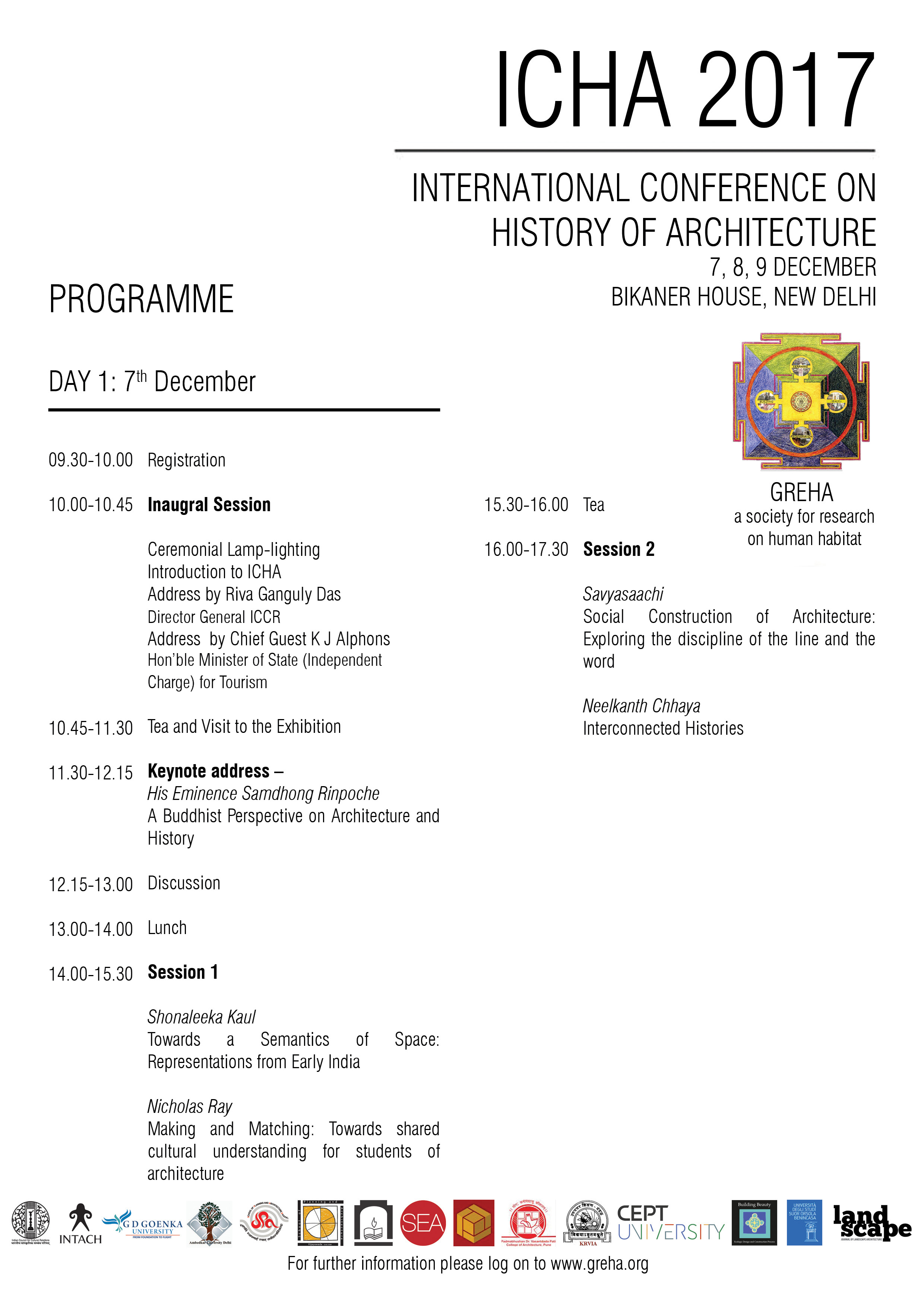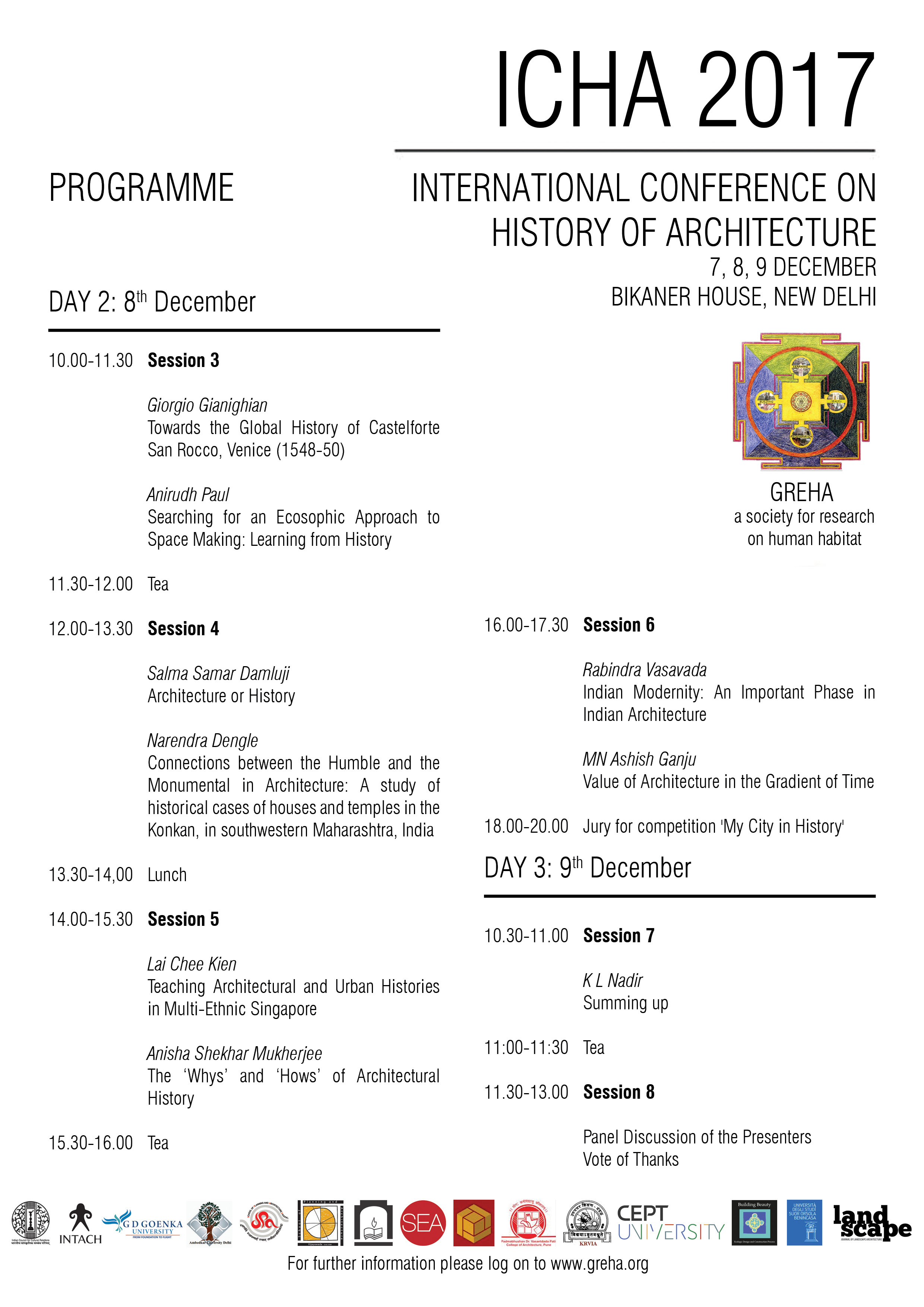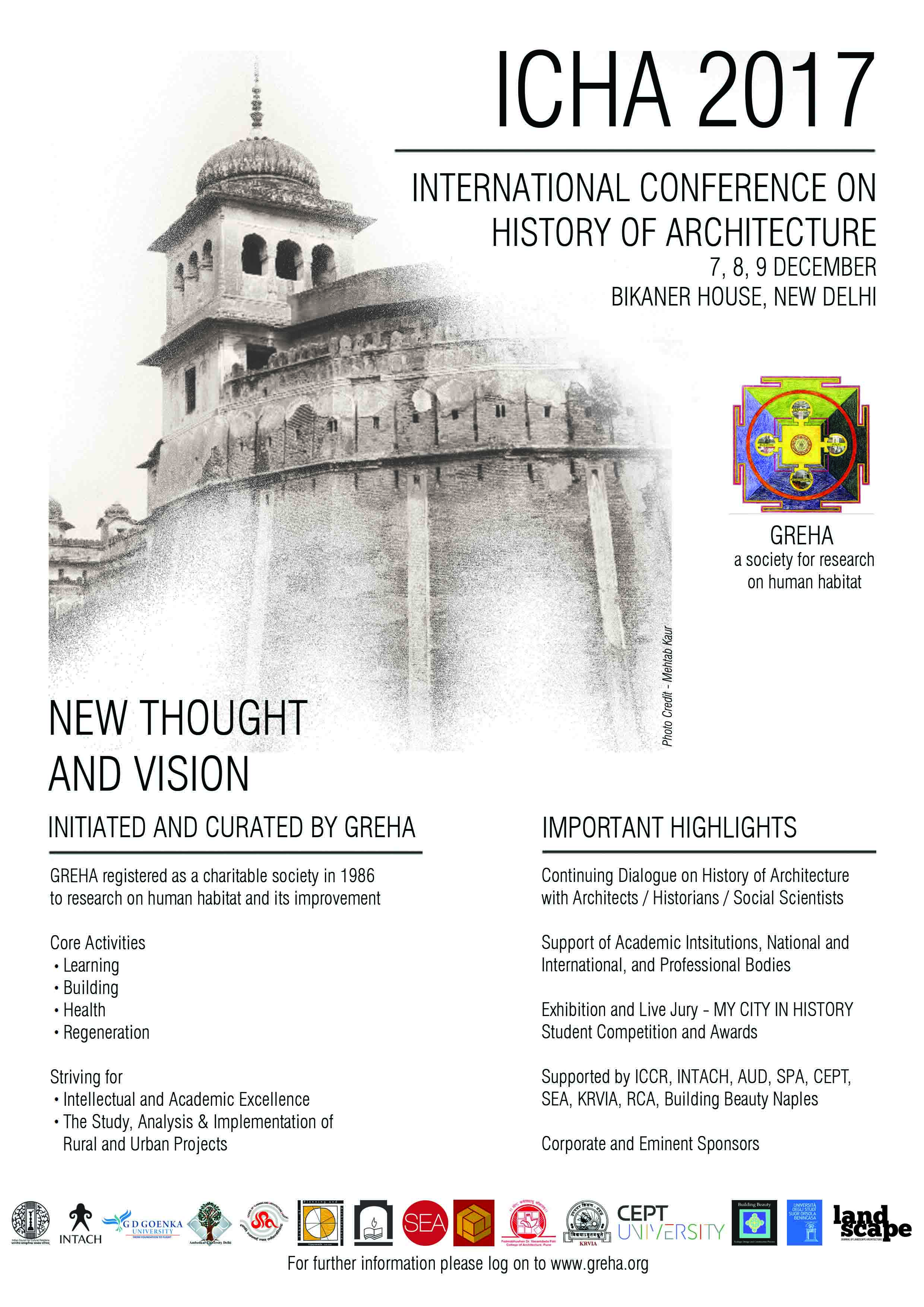 A three day conference is planned to discuss the study of history of architecture, with the participation of national and international scholars of eminence. The Indian Council for Cultural Relations (ICCR) has promoted this venture and promised financial support to cover costs of international travel. Collaboration is agreed with the Indian National Trust for Art and Cultural Heritage (INTACH),the B R Ambedkar University Delhi and Building Beauty Program at University Suor Orsola Benincasa, Naples, Italy. We are seeking collaboration with the Indian Institute of Architects (IIA) and several educational and cultural institutions.